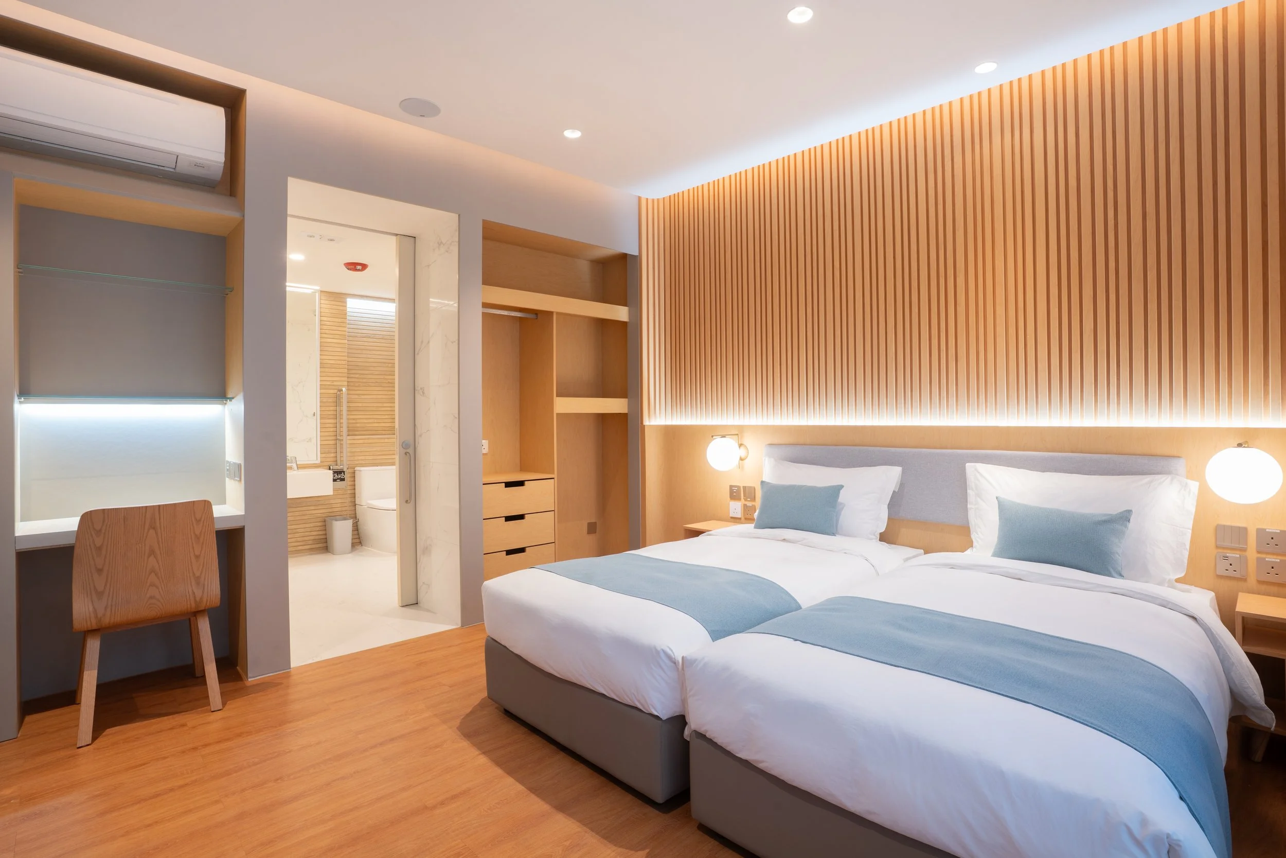 住宿教學樓設有28間客房,各具特色,從標準客房到擁有天際線視野的複式套房,均配有偌大窗戶或寬敞陽台,足不出戶,壯麗美景盡收眼底。為履行對環境保護的承諾,我們實踐以下綠色措施: 所有客房範圍內全面禁止吸煙。 客房內之用品 (如:潤膚露、肥皂、棉花棒、浴帽等) 將應要求提供。 客房 標準客房 無障礙海景客房 標準海景客房 三房海景套房 三房複式海景套房 ©版權 2025. 澳門旅遊大學 住宿教學樓